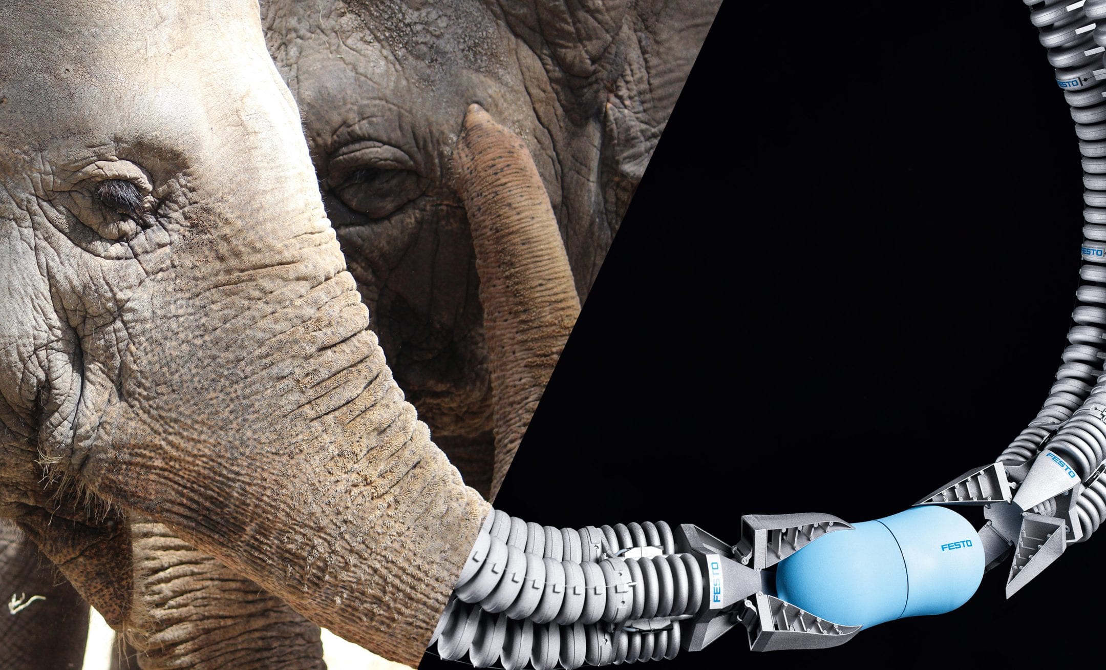 Festo, a German company that specializes in automation, has created a new type of robotic arm that is lightweight, flexible, and resilient. In a factory setting, traditional robotic arms made from heavy metal can be very dangerous for people to work around. Festo’s Bionic Handling Assistant solves this problem with inspiration from the elephant’s trunk. There are no bones in an elephant’s trunk. Instead, there are roughly 40,000 muscle bundles that work together to provide an appendage that can be soft and flexible, while also transmitting large forces and performing precise motions in 3 dimensions. Instead of muscles, Festo’s design uses hollow, air filled plastic chambers that are inflated and deflated to control the arm’s movements and give it a range of motion similar to the trunk. The air-filled arm is also much safer for workers to interact with and can be used in settings such as laboratories and hospitals where traditional robotic arms may not be appropriate.