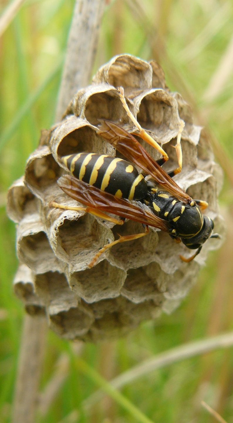 Nests of paper wasps are made of paper-like material, created from wood and hardening saliva.